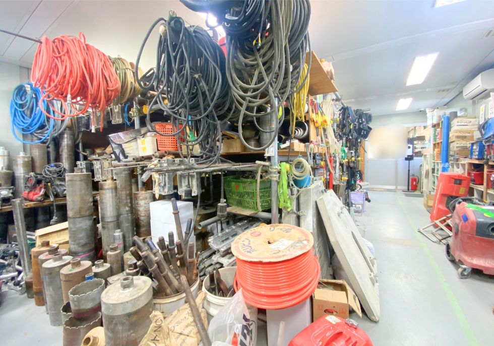 こちらは施工に必要な工具や機械を管理している倉庫です。