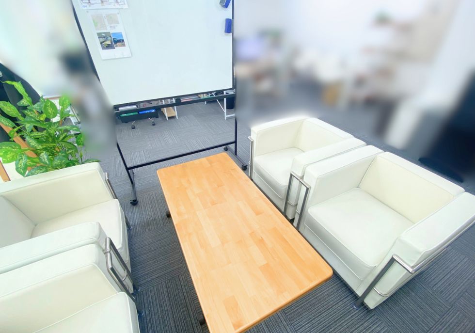 デスクと同様、白いソファーと木目調のローテーブルで統一されており、落ち着いた雰囲気の中で打ち合 わせを行うことができます。
